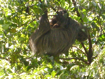 Its a brown-throated tree sloth in its characteristic upside down position! |